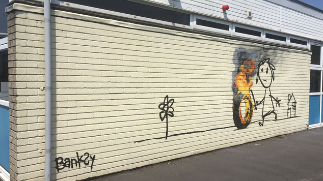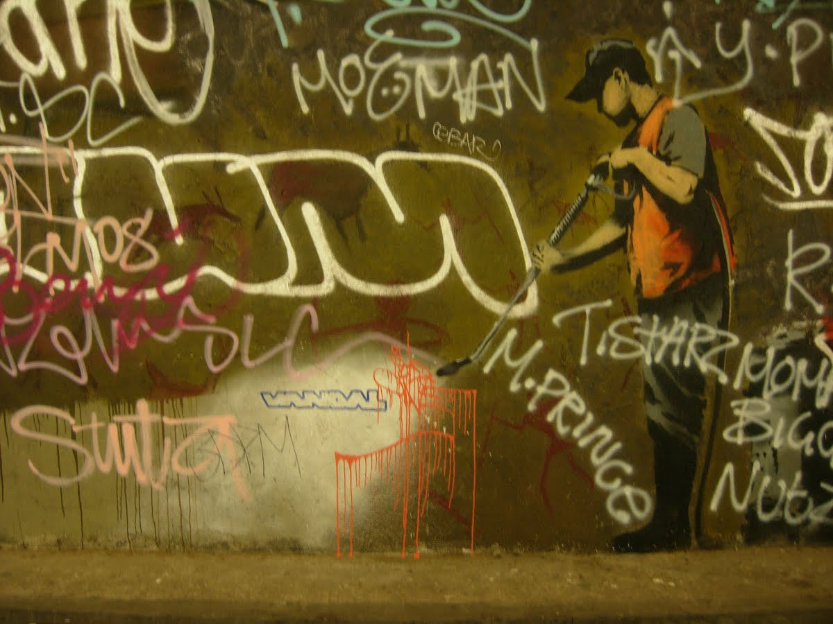 Anonimni britanski ulični i grafiti umjetnik, koji se među brojnim sličnim autorima izdvojio po specifičnom političkom aktivizmu, pažnju svjetske javnosti počeo je privlačiti ranih 1990-ih godina. Murale i grafite o korupciji i nejednakostima u društvu, s velikom dozom humora i ironije počeo se iscrtavati po Londonu, Brightonu i Bristolu, a onda i raznim stranama svijeta, potpisujući se samo kao Banksy.