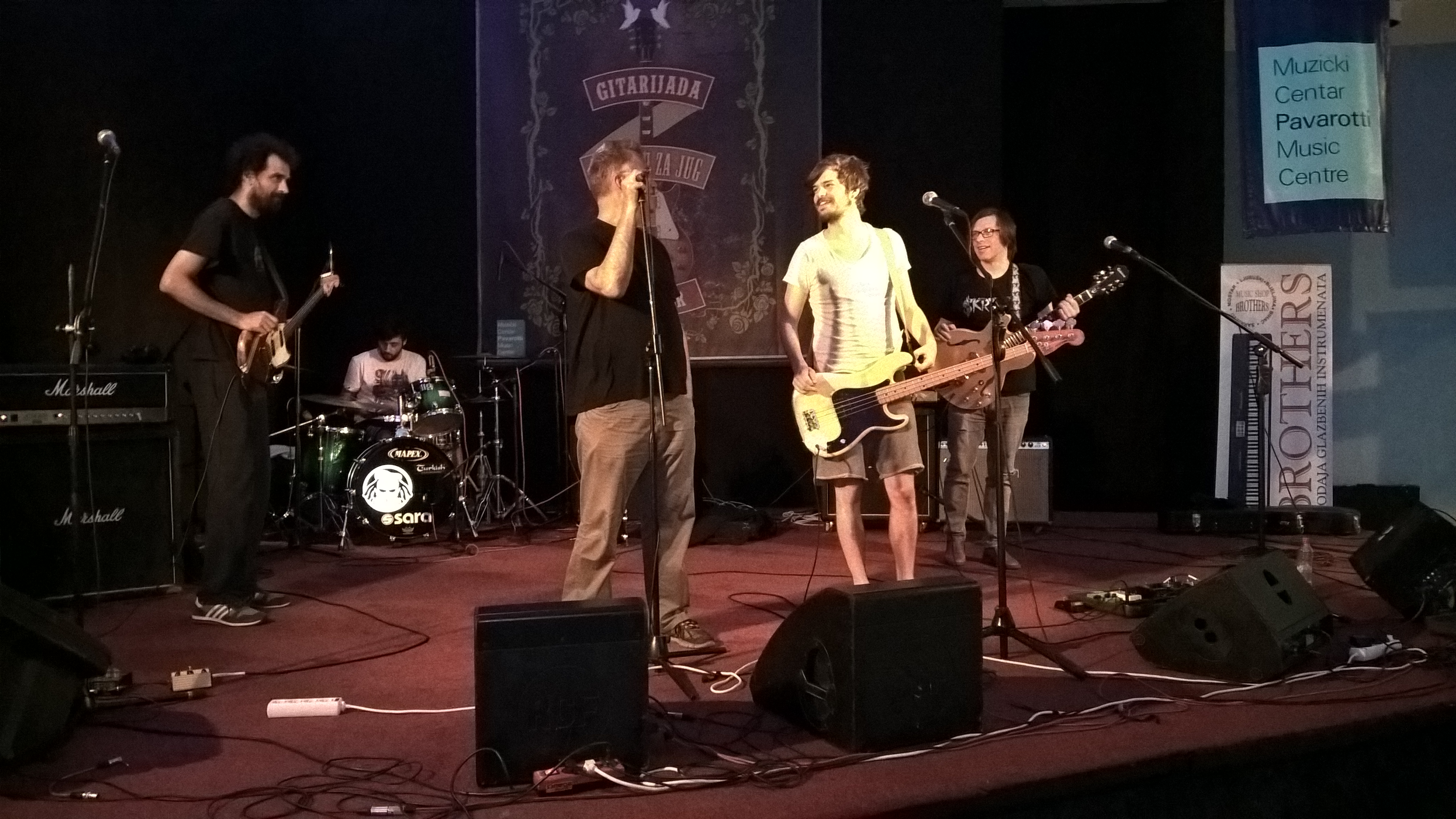 Fotogalerija: nastupi goraždanske grupe Cacafuego (pobjednici prve gitarijade) i beogradskih Škrtica, na završnoj večeri Gitarijade, 12. 8., poslije proglašenja pobjednika.