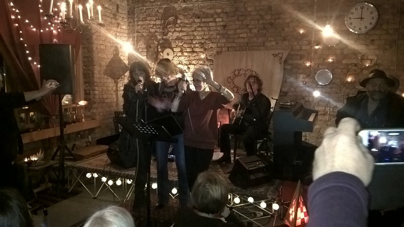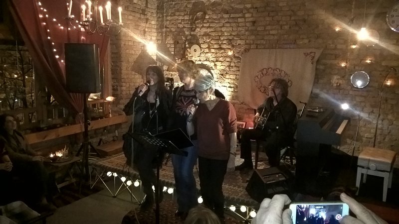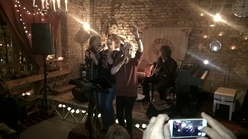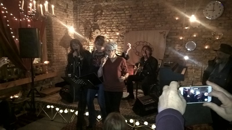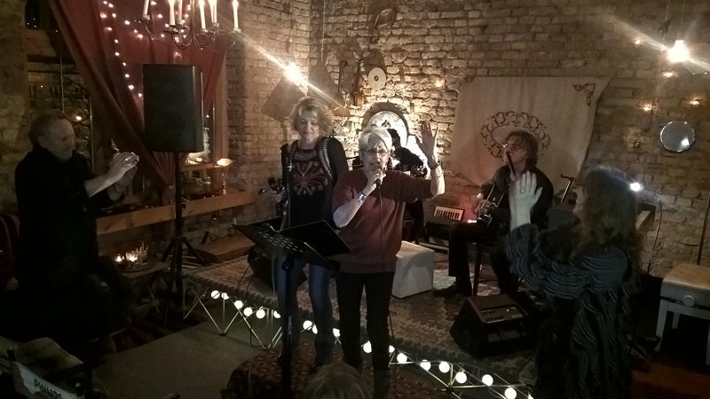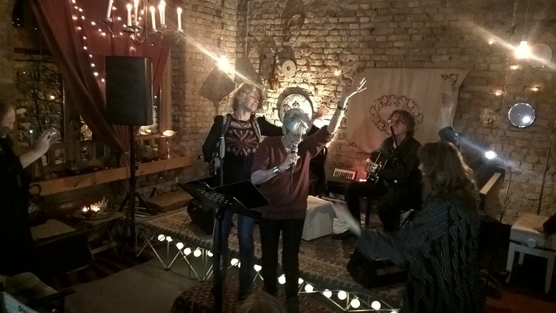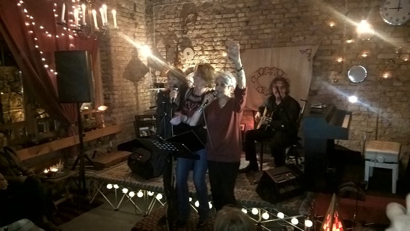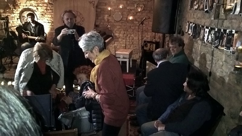Nakon što je vidno uživala u tuđim izvedbama, ta energija, koju smo kao pitanje spomenuli ranije, povukla ju je da i sama izađe pred prijatelje. Spontano je zajedno sa Almom i Draganom zapjevala, a onda izvela i svoje dvije pjesme. I tu je odgovor na pitanje: Joan Baez muziku muziku u sebi ima u svakom trenutku. Da, živi od nje, ali ona nije samo izvođač profesionalac (usput, sarajevski koncert svira bez honorara). Svi veliki umjetnici su veliki zato jer umiju biti mali, obični.