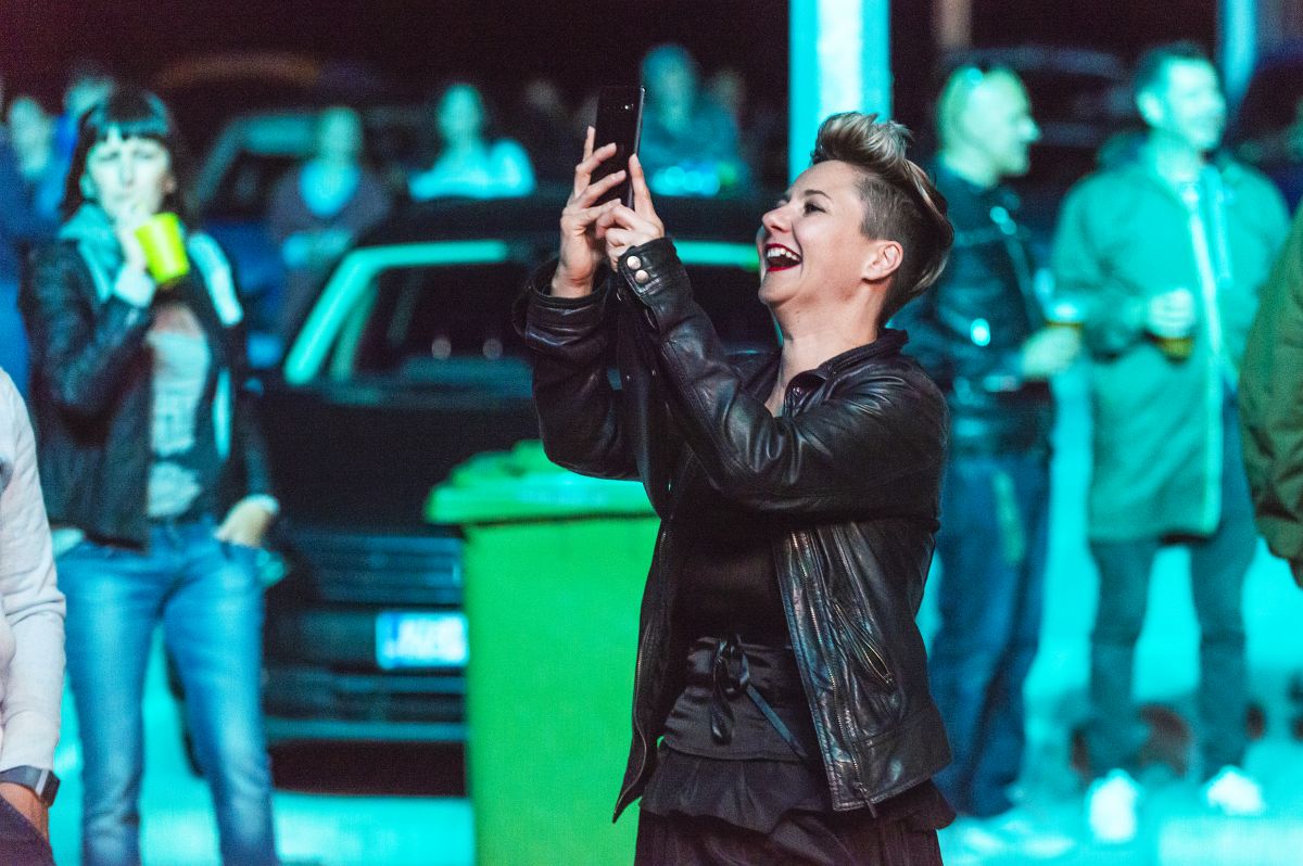 Iako na ovoj sceni nije bilo mjesta za rastrčavanje, ni publike ispod pozornice, njihova silovita energija, kako u klubovima, tako i na ovom parkingu, magično djeluje na posjetitelje i polako, trebalo je 2-3 pjesme, da publika oprezno izmili od svojih limenih ljubimaca prema sceni. Naravno, još uvijek pazeći na distancu. I onda se zaplesalo i zapjevalo, uz bučno odobravanje sirenama iz automobila. Kawasaki 3p surova su razmjena energije s publikom lak i ograničanim uvjetima.